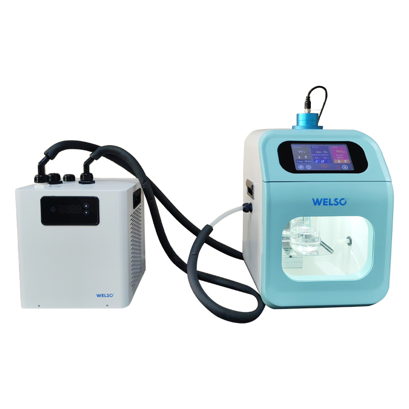 Welso ultrasonic homogenizer consists of a low-temperature ultrasonic main unit, a portable low-temperature chiller, and 100mL beaker. Our WUHC series integrated ultrasonic homogenizer (sonicator) can be used for wide variety of applications including cell disruption, DNA shearing, particle dispersion, emulsification and chemical reactions acceleration.